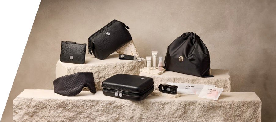 Collaboration between EVA Air and Giorgio Armani, offering a brand new amenity kit